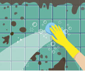 Just like your cooking tools, cupboards can get grimy. Add a little dish soap to a spray bottle with warm water to mist away the grease. Then, rinse with a well-wrung cloth and dry.